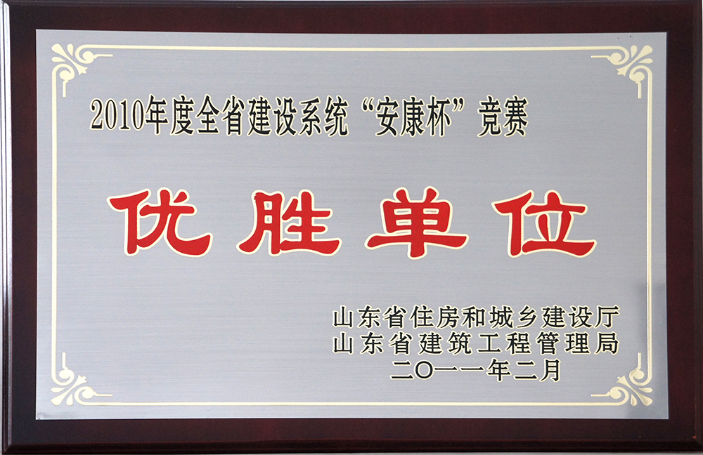 被山東省住房和城鄉(xiāng)建設(shè)廳、山東省建筑工程管理處聯(lián)合評為2010年度全省建設(shè)系統(tǒng)“安康杯”競賽優(yōu)勝單位。