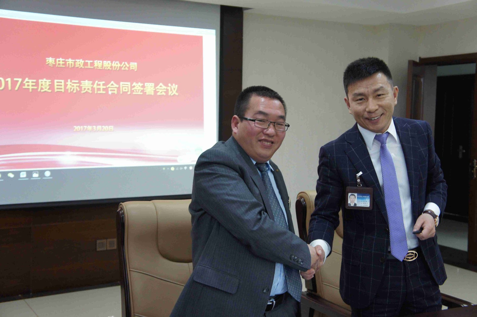 3月20日上午,棗莊市政工程股份公司召開2017年度目標(biāo)責(zé)任合同簽署會(huì)議。全體高管、各部門(各分公司)主要負(fù)責(zé)人以及上?;蹣愎芾碜稍児竟ぷ魅藛T在辦公樓12樓會(huì)議室參加了會(huì)議。趙峰董事長(zhǎng)(總經(jīng)理)代表公司同各部門(各分公司)主要負(fù)責(zé)人簽署了《2017年度目標(biāo)責(zé)任合同》。會(huì)議由劉博副總經(jīng)理主持。