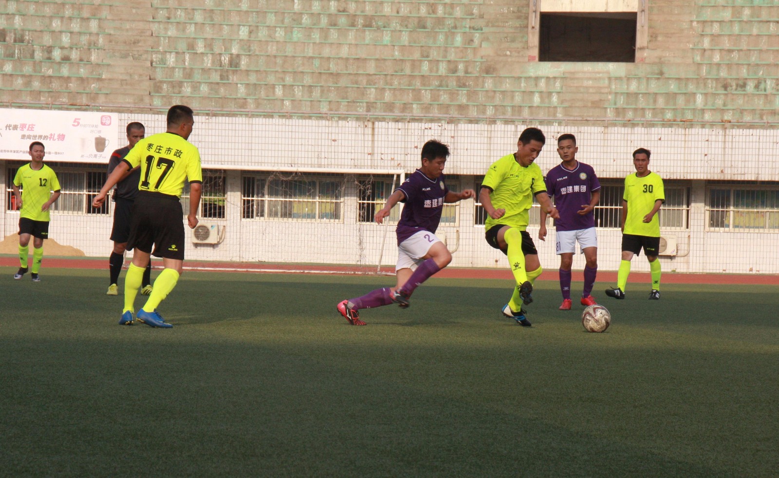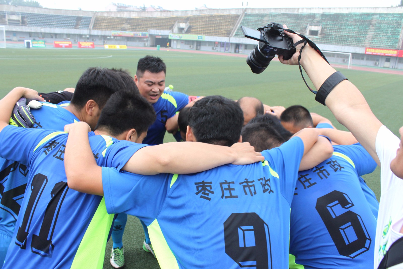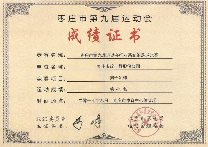 綠茵點亮夢想,激情舞動青春。由棗莊市人民政府主辦,市體育局、市體育總會承辦的棗莊市第九屆運動會行業(yè)系統(tǒng)組足球賽于8月8日—12日在市體育中心體育場舉行。經(jīng)過五天的激烈角逐,我公司由黨總支書記、常務副總經(jīng)理夏士泉帶隊參賽的市政足球隊最終獲得了第七名的成績。