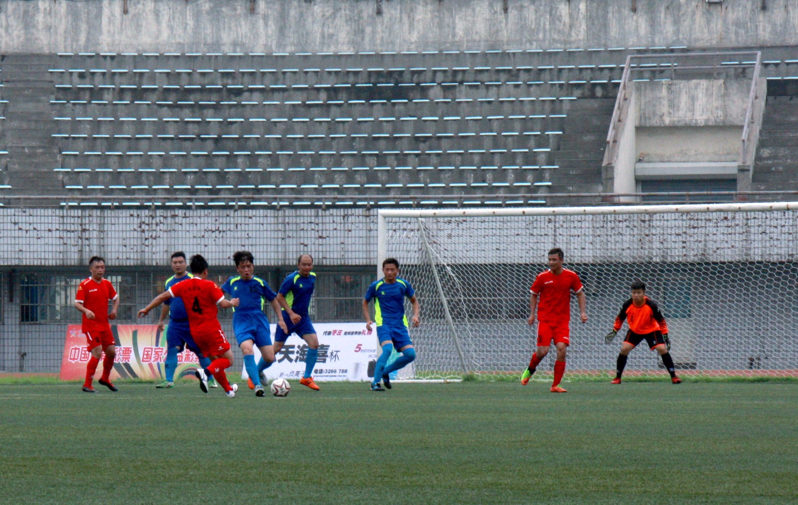 據(jù)了解,市運會每四年一屆,此次是水平較高、爭奪最激烈的足球賽,可以說這是棗莊市業(yè)余足球的一場盛會。本次競賽執(zhí)行國際足聯(lián)最新審定的《足球競賽規(guī)則》,采用11人制,每半場35分鐘,中場休息不超過10分鐘。為積極參加這次九運會足球賽,我公司從各部門、各分公司業(yè)余足球隊伍中抽調(diào)選拔了一批隊員組成了棗莊市政足球隊,由于工作上的原因,他們在賽前僅進行了五天的緊急訓練。在連續(xù)四天四場高強度的比賽中,球員們就像在草原上的一批脫韁的“黑馬”,奮力拼搏,跑位傳球,跌倒了,再爬起來,受傷了,仍咬牙堅持。他們?yōu)榱俗约旱膲粝攵?,給我們帶來了一場又一場充滿了激情與拼搏的比賽。