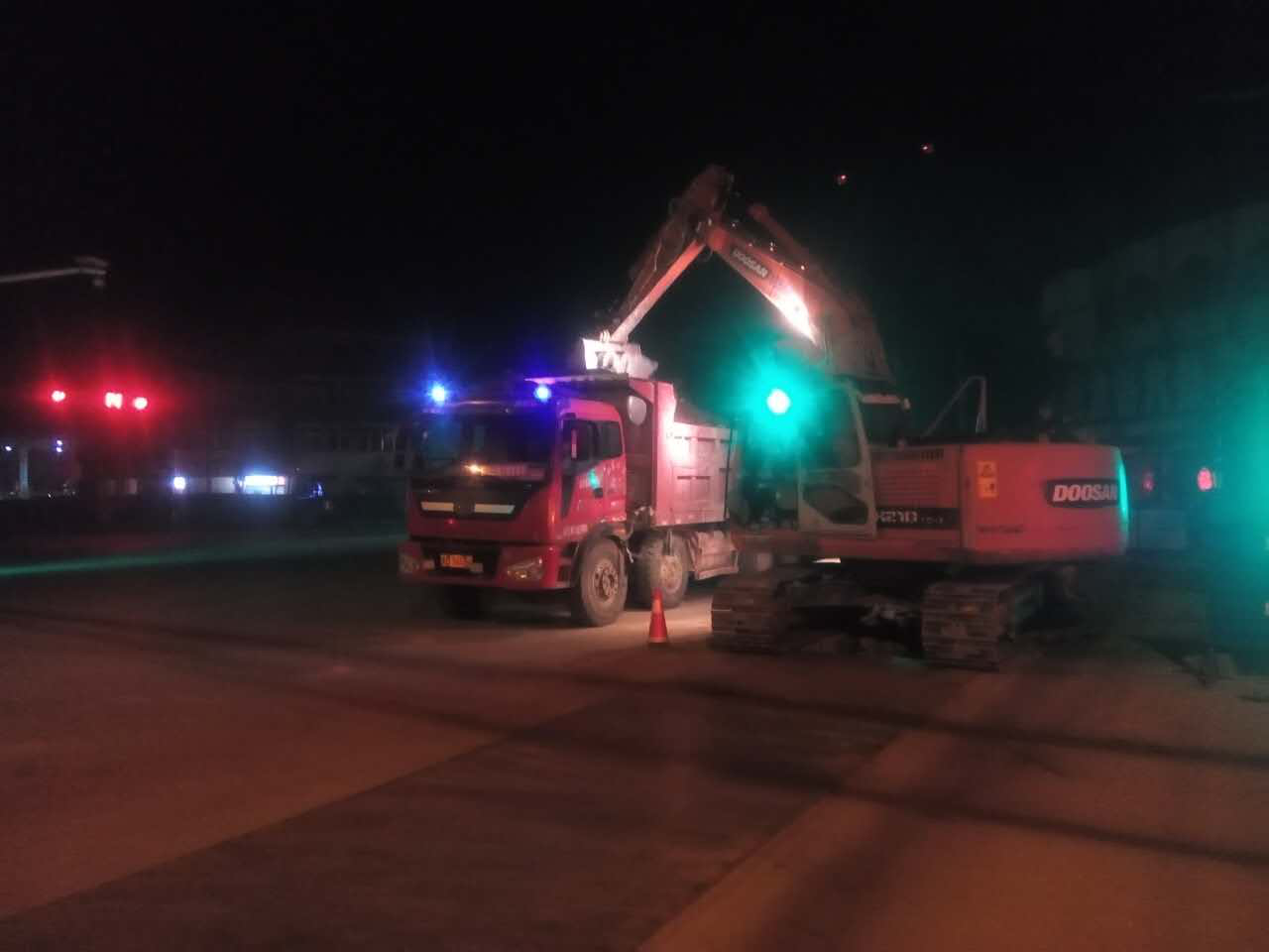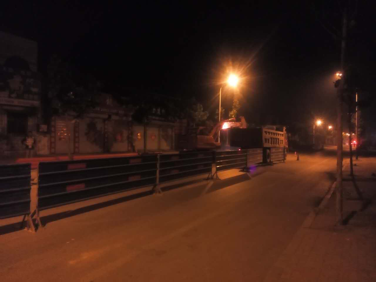 由于該工程緊靠利民批發(fā)市場(chǎng)、鋼材批發(fā)市場(chǎng)及香港街等大型物資集散地,車流、人流量大,沿線營業(yè)門市眾多,本就狹窄的道路無法提供有效的工作寬度。項(xiàng)目管理人員根據(jù)工地現(xiàn)狀,制定了白加黑的施工方案。在白天正常施工的同時(shí),將開挖裝車、商砼澆筑等對(duì)工作寬度要求高的工序放在晚上進(jìn)行。
